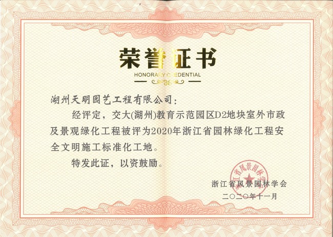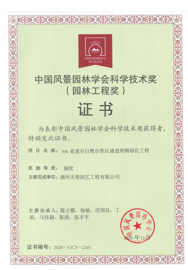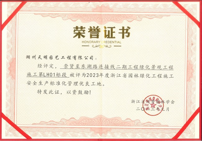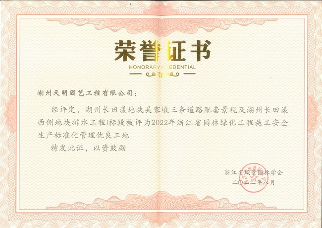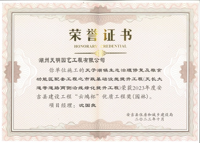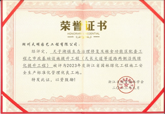 湖州天明园艺工程有限公司,位于浙江省湖州市经济开发区,创建于1996年11月,具有原城市园林绿化壹级资质、市政公用工程施工总承包贰级资质、建筑工程施工总承包贰级,城市及道路照明工程专业承包贰级资质、园林古建筑工程专业承包贰级资质、防水防腐保温工程专业承包贰级、建筑装修装饰工程专业承包贰级、施工劳务不分等级。是一家机构健全、制度完善、装备精良、技术精湛,管理力量雄厚的以园林绿化施工服务、绿化景观苗木花卉培育生产、销售及市政公用工程施工为一体的园林企业。现公司具有工程技术管理中高级职称人员及各类中高级技术工人80余人,拥有苗圃600余亩....查看更多